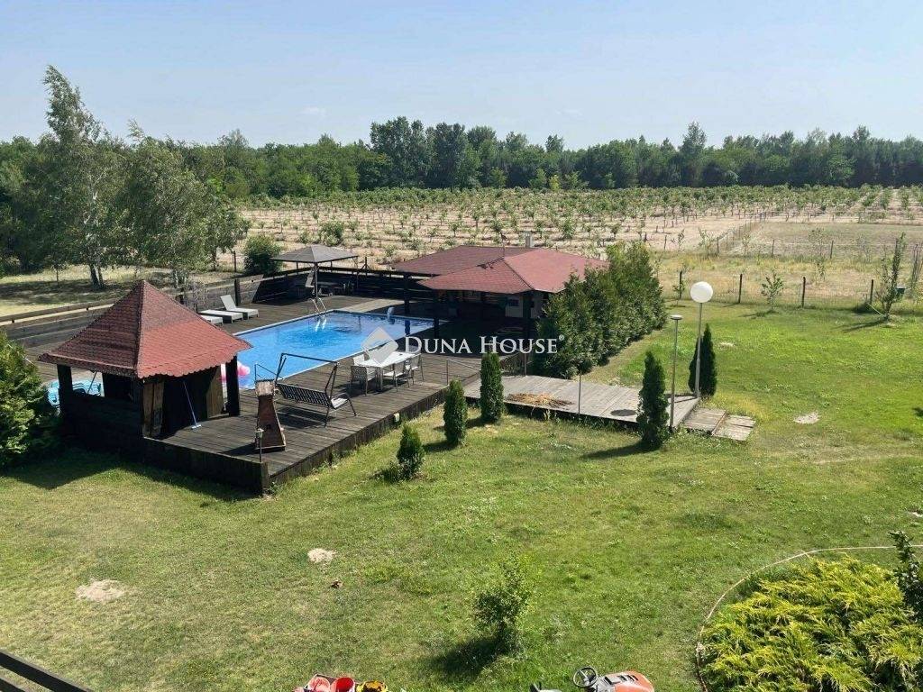 Jakabszállás külterületén 6,5 hektáros BIRTOK ELADÓ!Megvételre kínálom, ezt a minden igényt kielégítő, luxus felszereltségű ingatlant. A nyilvántartási adatok szerint kivett panzió, sportpálya és legelő a besorolása. Az egész terület 6,5 ha, melyből 5,7 ha kivett.Kft. tulajdonában van, a Kft-t megvásárolva juthatnak hozzá, így külföldi állampolgárok is megvásárolhatják. A birtok közzéppontjában található főépület 650 nm-es, összesen 8 apartmannból áll, melyek előszoba, szoba, fürdő és WC helyiségekből állnak. Az összes szoba légkondicionálóval felszerelt.A földszinten, mely közel 250 nm, tágas nappali, télikert beépített grillezővel, elektromos padlófűtéssel, és exkluzív kivetelezésű ALNO konyha áll rendelkezésre. A konyha gránit munkalappal, beépített gépekkel, igazi élményt nyújt a főzéshez. Az egész épület magas műszaki tartalommal rendelkezik, mind a gépészet, mind a burkolatok, szaniterek vonatkozásában.Az emeleten 6 apartman, nagy nappali és balkon található. Az apartmanok itt is szoba, előszoba, fürdő és WC-vel felszereltek. A tetőtérben egy különálló lakrész került elhelyezésre. Csodás kilátással az egész birtokra.Műszaki jellemzők:- falazat porotherm 38-as tégla- vízellátás: 2 db mikroszűrővel felszerelt 40-60 méteres mély kút (5 db fúrt kút, mely össze van kötve, a folyamatos vízellátás érdekében) Melegvíz lehetséges, gázzal, fával, elektromos árammal- fűtés: központifűtés, 3500 literes külső gáztartállyal, fatüzelés új 40 KW puffertálolóval, napelemmel működő elektromos radiátor, nappaliban cserépkályha- áram a vezetéken keresztül 3 x 32 amper biztosítékkal- napelemes rendszer 31 500 kwh éves hozammal- vészáram-generátor 15 KW, 380 V, automatikus bekapcsolás, 4 hengeres dízel egységgel felszerelve- szennyvíz: extra 2 kamrás szennyvíztisztító Biztonság Kamerás megfigyelő rendszer Riasztórendszer A földszint teljesen felszerelt ablakrácsokkal. Mozgásérzékelők világítással az egész ingatlanban Mozgásérzékelők világítással a ház körülInternet és hálózat 2 LTE / G4 külső antenna routerrel/WiFi-vel Hálózati elosztás a házbanA hatalmas birtok több, mint a fele bekerített.Külön exkluzív medencetér, pihenővel található. A medence vízellátása 100 méter mély kútból történik. Tisztító berendezéssel, napelemes fútéssel rendelkezik. A medence körülötti rész fával burkolt. Fedett külső, extra minőségű konyhával, zuhanyzórésszel és napozóterasszal kialakított. A medencetér 22 X 16,5 méter. A medence 12 X 6,5 méter területű, mely ellenáramű rendszerrel és világítással rendelkezik.A birtokon található még 4 ló elhelyezésére alkalmas box, szénatároló és szabadtéri lóterület etetőtérrel.A gépészet külön épületben található.Melléképület garázzsal, a tetőtérben kialakított apartmannal, közvetlenül a bejárati kapunál helyezkedik el, a kapu elektromosan távvezérléssel nyitható.Kisállattartásra alkalmas elkerített terület ólakkal, traktrotároló, fedett szín, 4 autó elhelyezésére alkalmas fededtt beálló is megtalálható ezen a fantasztikus helyen.Rendkívül sok lehetőséget rejt magában, engedje szárnyalni fantáziáját és szerezze meg ezt a páratlan ingatlant!Jakabszállás külterülétn az asztaltos úttól kb. 800 méterre található, Kecskeméttől 18 km-re. A külvilág zajától mentes, erdős, környezetben, kiváló levegővel rendelkező birtok.Megtekintési szándékával, vagy kérdés esetén, hívjon bizalommal!