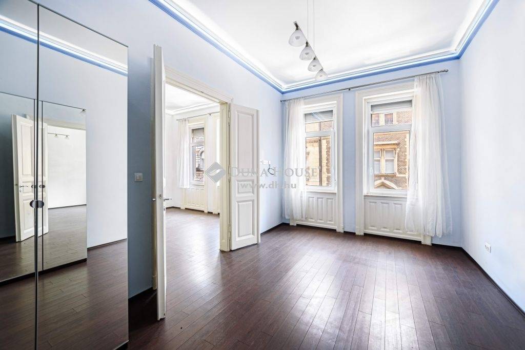 VII. kerület szívében, a történelmi hangulatú Hernád utcában eladó egy különleges hangulatú, világos, 86 m²-es, igényesen kialakított, 2 szobás nagypolgári lakás. A második emeleten elhelyezkedő ingatlan egy rendezett, lift nélküli társasházban található, ahol a klasszikus belvárosi miliő ötvöződik a modern kényelemmel.86 m² alapterületen, 2 világos tágas szoba, konyha étkezővel, nagyméretű fürdőszoba, külön wc, tároló és egy edzősarok szaunával lett kialakítva.A konyhában Modern stílusú beépített gépesített konyhabútor található. Konyhasziget kialakítással rendkívül praktikussá vált a hely kihasználása.A magas belmagasságot kihasználva minden helyiségben hangulatvilágítás, és számos spot lámpa lett beépítve, ezzel a világítás kialakítással vegyítették a modern és polgári hatást.Padlófűtés van az egész lakásban, három db Samsung inverteres klíma teszi lehetővé, hogy minden helyiségben a hűtés-fűtés külön szabályozható legyen. A szobákban parketta van, és az étkező egy részén is, a vizes helyiségek modern csempeburkolatot kaptak. Az összes nyílászáró kicserélésre került, új műanyag redőnyös, beépített szúnyoghálós ablakokra, és belső minőségi ajtókra. A tágas fürdőszobában dupla mosdó és masszázsfunkciós nagyméretű sarokkád kapott helyet, A szobából és az étkezőből is megközelíthető, hangulatos üvegajtón keresztül.A wc külön helyiségben kapott helyet kézmosóval. Egy kisebb méretű tároló is található a lakásban.A wellnes sarokban egy Wellis Infraszauna és edzősarok van.A fürdő, tároló és wc is ablakkal rendelkezik, ezáltal biztosított a szellőztetés is.Műszaki állapot:10 éve teljes körű elektromos és vízvezeték-csere, padlófűtés kiépítés és nyílászáró csere történt, A fűtést Vailant cirkó kazán biztosítja. Wellis Infraszauna lett beépítve. Új műanyag nyílászárók, redőnnyel és szúnyoghálóval. Riasztó rendszer is van. 3 db inverteres Samsung hűtő-fűtő klíma. A tulajdonos folyamatosan gondoskodik az ingatlan minőségi állag megőrzéséről. A ház rendezett, csendes a lakóközösség.A környék: A Hernád utca a VII. kerület egyik csendesebb, ám kiválóan megközelíthető része, ahol a századfordulós pesti hangulat máig érzékelhető. A környék történelmi múltú, közelében található a híres Damjanich utca, a Keleti pályaudvar, valamint a Városliget is csupán pár perc séta. A környék kitűnő infrastruktúrával rendelkezik: boltok, iskolák, kávézók, gyógyszertár, tömegközlekedés.