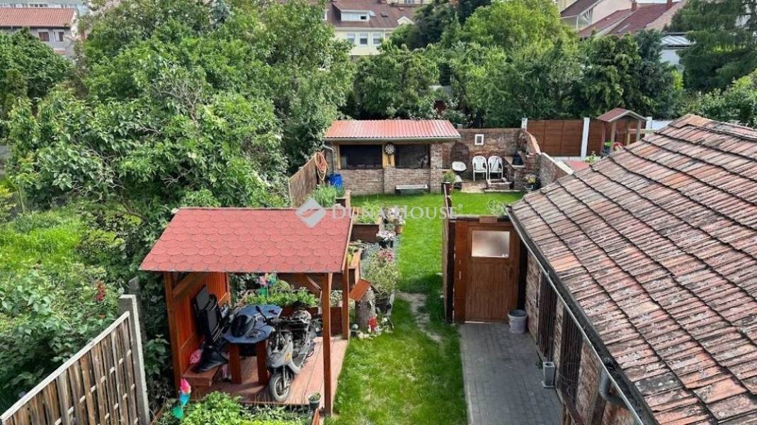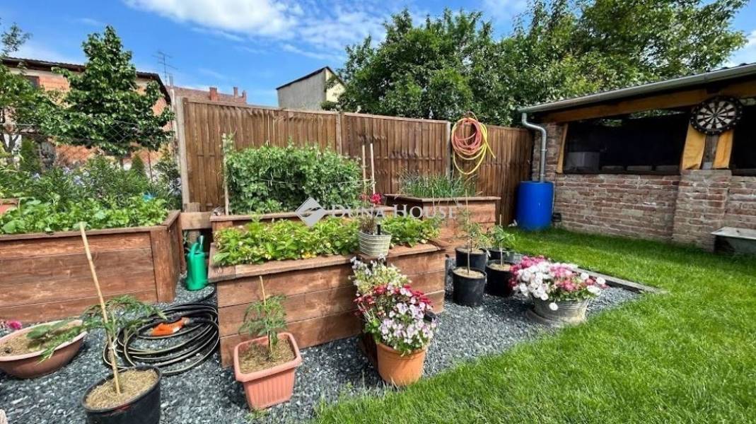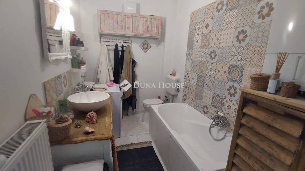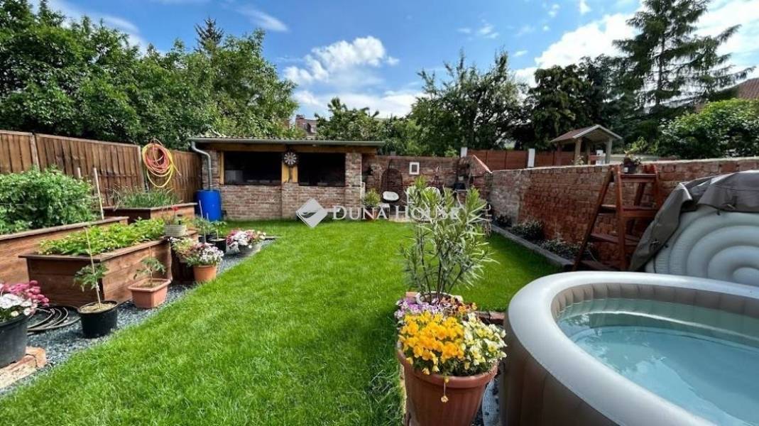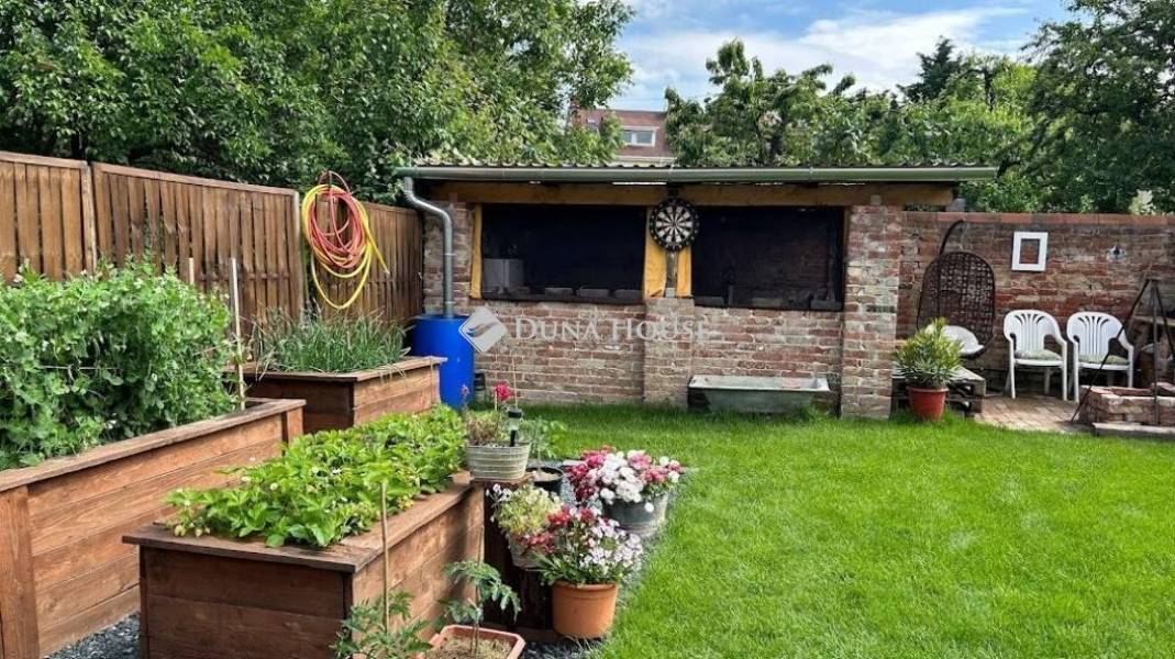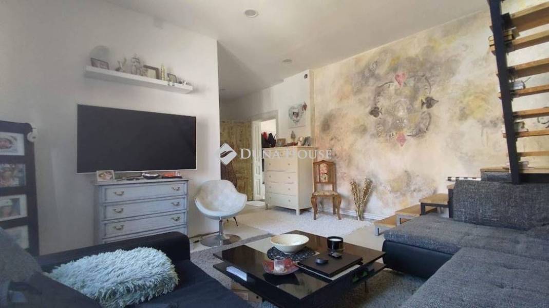 Varázslatos környezetben kertkapcsolatos 111 négyzetméteres lakás eladó !Szombathely Fő terétől pár percre , kis forgalmú utcában vált eladóvá egy belső két szintes teljeskörű új belsőt kapó különleges lakás.Sajátossága, hogy a tulajdonosa a VINTAGE lakásbelső stílusirányzatot követve választotta meg a bútorzatot , így a falak és az ajtók is ebben a szemléleltben nyerték el mai formájukat.A lakás a ház első emeletén helyezkedik el. Az alsó szinten az előszobába érkezünk, innen balra a konyha és a kamra, jobbra haladva a fürdőszobát és a nappali bejáratát találjuk. A falak áthelyezésével itt egy hálószoba is kialakításra került. A tetőtér egy modern megoldású lépcsősoron keresztül érhető el, ahol a nappali mellé egy háló és egy wc blokk került egy kis előtérrel.Fűtése kondenzációs kazánról üzemel. A villamos hálózat teljes egészében át lett húzva a lakásban.Az ingatlanhoz tartozik egy kb. 150 négyzetméteres saját kertrész, ami intim környezetben biztosítja a medencézni kívánó emberek pihenését. A tavalyi év során egy 26 négyzetméteres fedett kerti terasz valósult meg, ahol a barátainkat láthatjuk vendégül. A zöld rész mellett magaságyásban lehet a friss zöldségeket megtermelni.Ide el kell jönni és magával ragadja a nyugalom szigete!A kerti napernyőnek, nyugágynak és más dolgainknak 2 tároló is helyet biztosít, de elfér a család biciklije is.Ha igazán különlegesre vágyik jöjjön el és nézze meg, mert magáért beszél!
