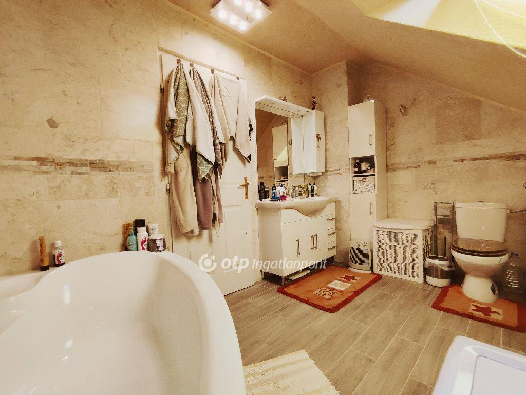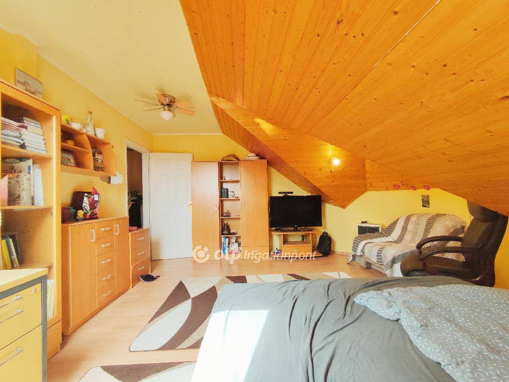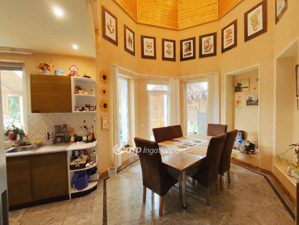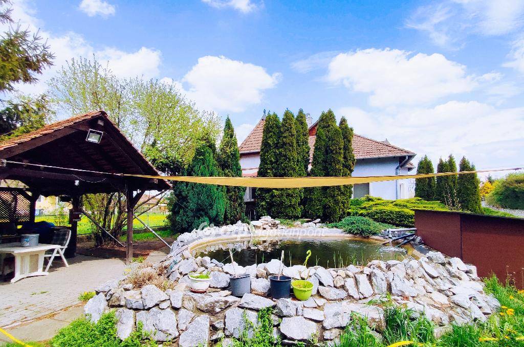Kazincbarcika, Kuruc út, eladó egy 1+3 szoba, 200 m2-es, tetőteres, galériás, exkluzív, családi ház kb 1200 m2 telken. Az ingatlan 2000. évben minőségi anyagok felhasználásával épült. Hőszigetelt műanyag nyílászárókkal és bejárati ajtóval felszerelt. Az otthon melegét gázkazán, továbbá egy vegyes tüzelésű kazán szolgáltatja, amik a ház alatt húzódó pincében kaptak helyett. A földszinten padlófűtés, míg a hálószobákban és egyéb helyiségekben radiátorok adják át a kazánok hőjét. 3 éve üzembehelyezésre került egy 6 Kw-os napelem rendszer, ami költséghatékony villamosenergia felhasználást eredményez. A mai bizonytalan energia helyzetben ez az ingatlan a szigetelése, illetve az alternatív fűtési lehetőségek, továbbá a napelem biztosította elektromos fűtés miatt KITŰNŐ VÁLASZTÁS! A földszinten található elegáns tágas nappali járólappal, a konyha és étkező gránittal burkolt. A hálószoba és az emeleten levő 3 szoba padlószőnyeggel, továbbá mindkét fürdőszoba és egyéb helyiségek járólappal burkoltak. Az emeleti fürdő 2 éve teljesen megújult, elegáns szállodai feelinget kapott. A szobák különállóak, saját bejárattal ellátottak. Az emeletről galérián keresztül tekinthetünk az étkezőre, melyből egy 30 m2-es fával fedett terasz nyílik. Az ingatlant kamerarendszer teszi biztonságosabbá. Az udvaron két gépkocsi befogadására alkalmas elektromos ajtóval szerelt garázs, továbbá egy családi és baráti összejövetelekre kitűnően alkalmas filagória került kialakításra. Az udvar fényét egy modern szűrőrendszerrel ellátott kerti tó, valamint sziklakert teszi teljessé. A családi fészek kulturált csendes lakókörnyezetben van, a belváros mégis percek alatt elérhető.