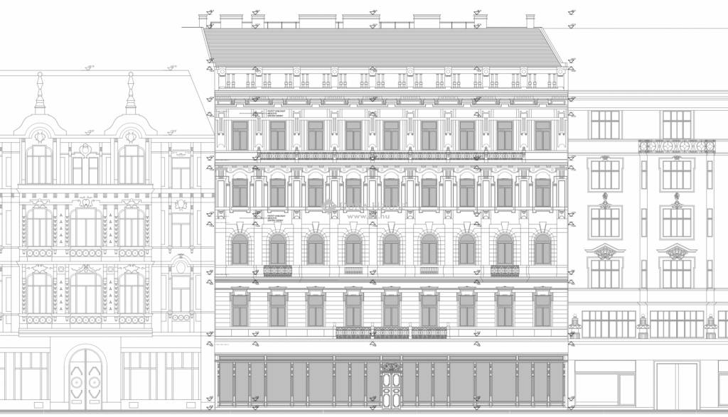Budapest, VIII. kerület, Baross utca, Horváth Mihály térhez közeli szakaszán, beépítésre váró tetőtér tulajdonjoga, tervekkel, építési engedélyekkel együtt eladó. A tervek szerint 9 db lakás alakítható, a lakótér nettó alapterülete 41 és 122 nm közé esik, 7 lakás rendelkezne terasszal.
