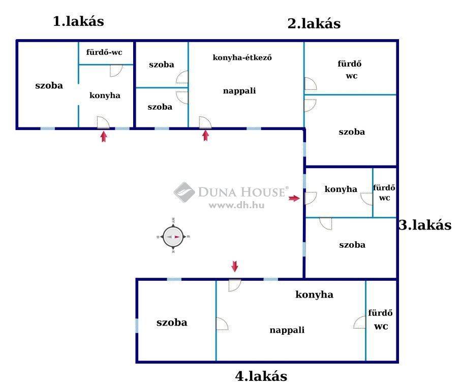 - Amerikai konyha + 3 szoba-nagy fürdőszoba wc-vel