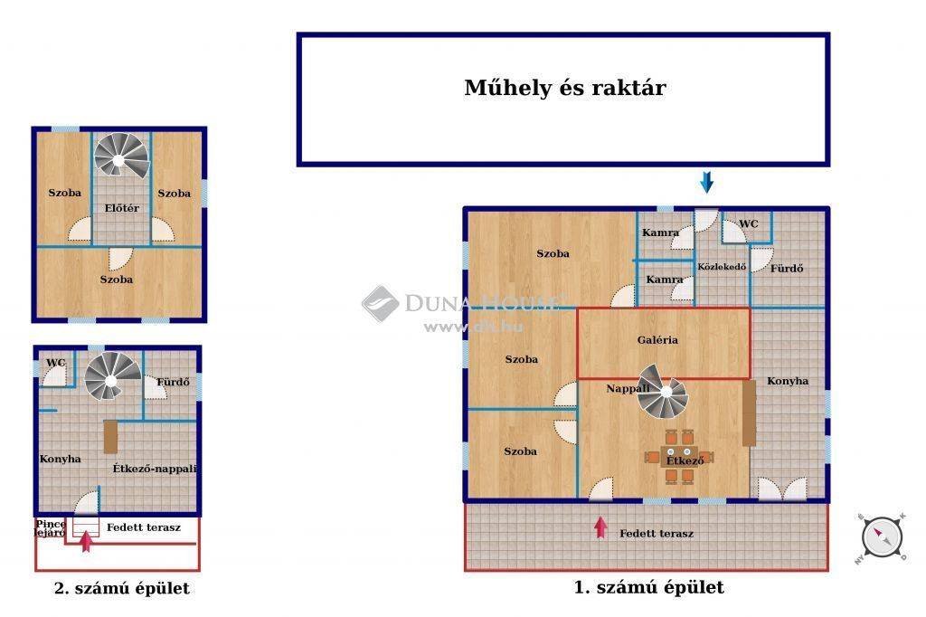 - 1. számú épület nappali + 3 szoba + 20 m2-es galéria