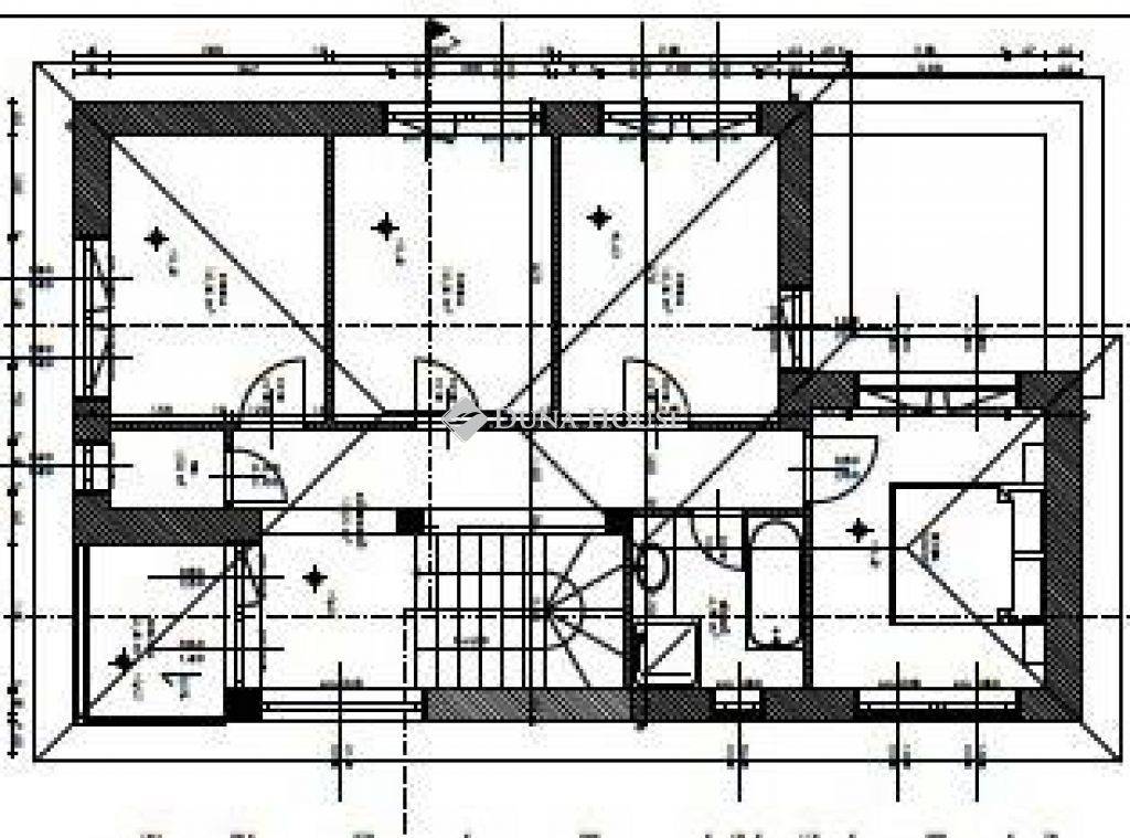 Emelet: 4 külön bejáratú szoba,, fürdő, szeparált mellékhelyiség és loggia (lakótér: 60,86 m2 + loggia: 4,43 m2).
