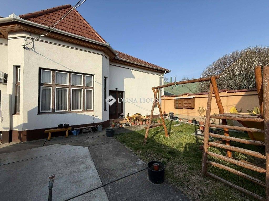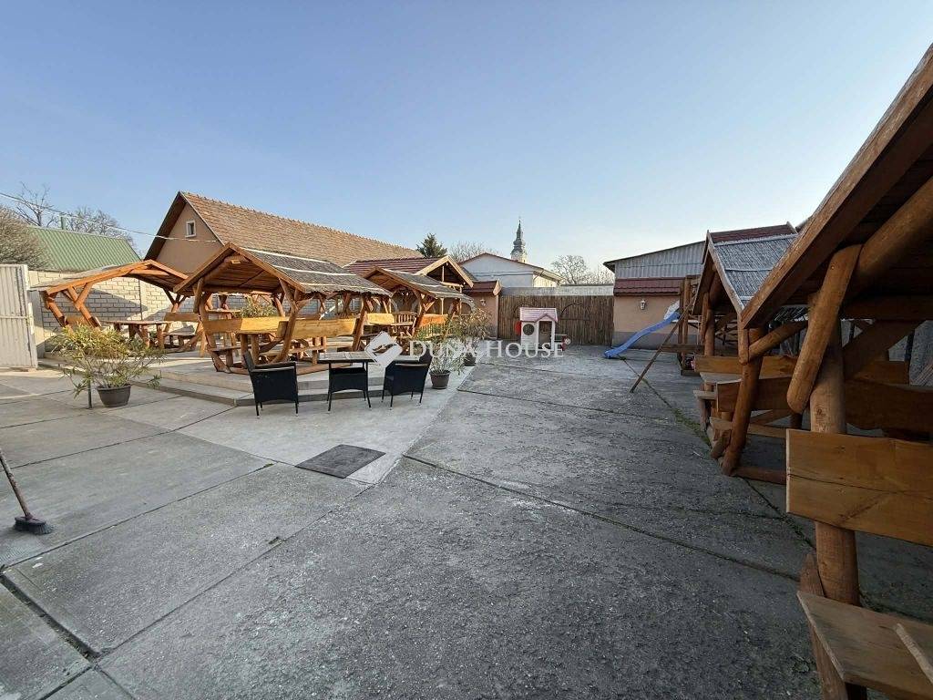 Az udvarban több autó beállására is van még hely, az udvart kerti fából készült kiülő bútor teszi kényelmessé.