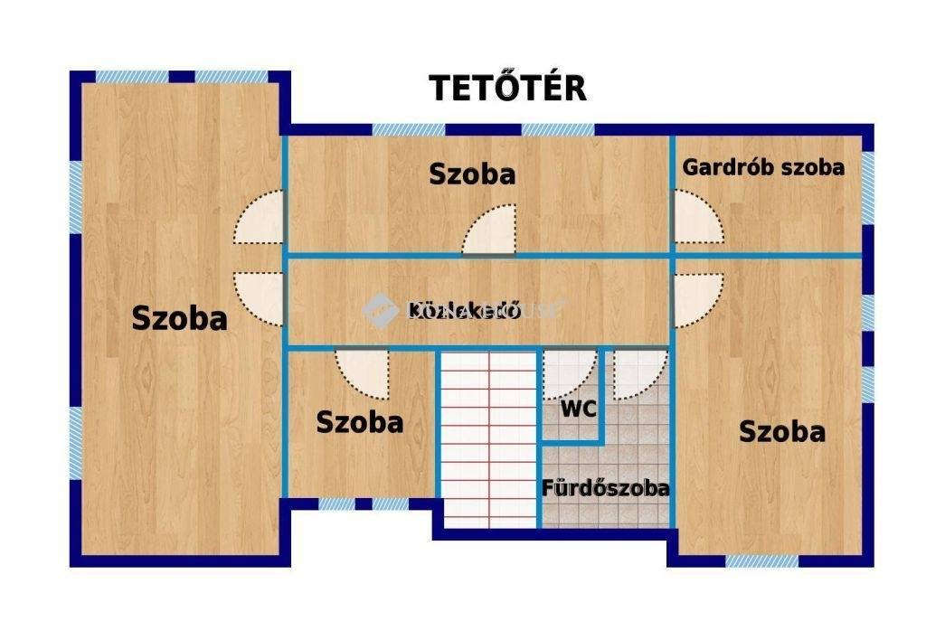 Két fürdőszoba, egy gardróbszoba beépített szekrényekkel, valamint egy bükkfa lépcső emeli a komfortérzetet.