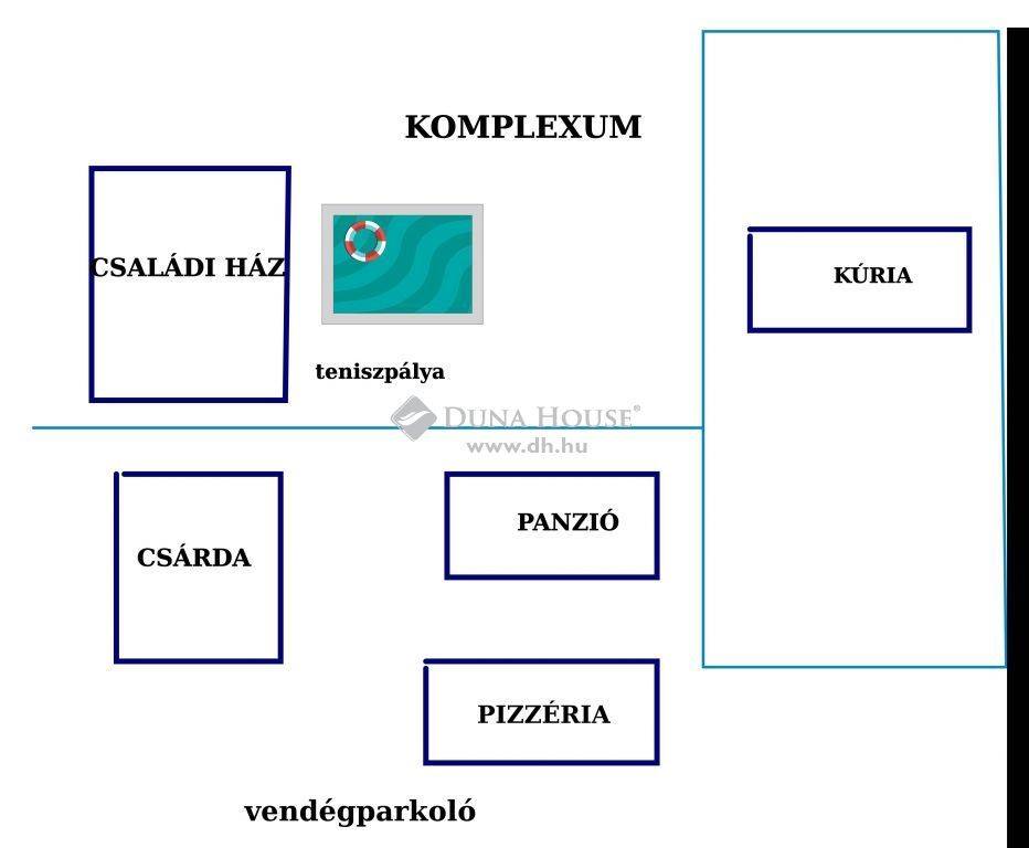 A Balatontól 5 perc autóútnyira, a Felvidék egyik legcsodálatosabb részén található az általam eladásra kínált rendezvénykomplexum.A sokféle hasznosításra kialakítható épületegyüttes az alábbi ingatlanokat foglalja magában:Egyszintes családi ház nettó 230 nm-en 4 apartmannal (szoba+fürdő), medencével, teniszpályával zárt udvarral, dupla-garázzsal. Fűtése elektromos padlófűtéssel és cserépkályhával megoldott.90%-os készültségben lévő panzió, melyben 22 db (szoba+fürdő) kerül kialakításra. Fűtése hőszivattyúval megoldott.80 nm pizzéria/étterem, melyben 2 tetőtéri apartman (nappali + 2 háló + fürdő) is található. Csárda-étterem mely összesen 500 nm-es (200 nm-es vendégtér, 200 nm konyha és 100 nm 3 szobás szolgálati lakás). Rendelkezésre áll 50 kWa napelemes rendszer és központi fűtés is. Fentiekhez tartozik egy 500 nm-es murvás parkoló is, mely kb. 120 gépkocsi elhelyezésére alkalmas.A komplexum jelenlegi tulajdonosa vállalja az épületek befejezését, akár üzemeltetését, vagy csak egy részének eladását is.Fentieken kívül egy kúria is eladó, mely rendezvényhelyszínként is szolgálhat. Ennek ára külön megállapodás részét képezni, az ajánlott vételár nem tartalmazza.Kérdés esetén kérem, keressen.
