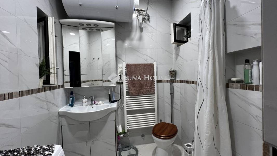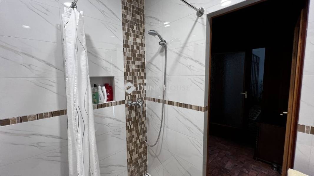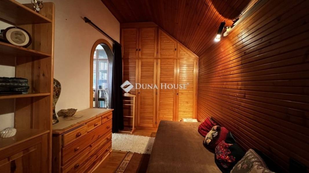 Eladásra kínálunk a XVI. kerületben, Árpádföldön 127 nm-es tehermentes, intim kerttel rendelkező, Jakuzzis családi házat 904 nm-es telken.A tekekhatáron lévő növényzet 70%-a örökzöld. A telken gondozott, termő gyümölcsfák helyezkednek el, meggy, alma, őszibarack, körte, szilva, valamint egy kis szőlőlugas, szedhető, fogyaszthatóak a termései.A kertben részben egy Mobilizálható, bazaltkockákból rakott kerti grillező található illetve nyugágy, ülőgarnitúra, 3x3m-es mobil napernyővel árnyékolható jakuzzi található. A sövények a füves területek a virágágyások locsolását a nagy teljesítményű, kútba beépített elektromos szivattyú biztosítja. A ház 60 nm beépíthető padlástérrel és 34 nm pincével rendelkezik.A pincében megtalálható egy tároló helyiség, egy kazánház gázkazánnal, és egy vegyes tüzelésű kazán, amiknek az égéstermékeit egy 3mm-es vastagságú saválló, rozsdamentes, 20cm átmérőjű, kéménycső segíti a házon kívülre juttatni. A fűtött pince szerelő aknával rendelkezik, ami felett gépkocsi tárolható.A ház villamosenergia ellátása háromfázissal biztosított, de a 80m2-es D-NY-i tájolású tető biztosítja a napelemek telepíthetőségét. A 104 nm-es lakóteret egy 12 nm-es fedett teraszon keresztül érjük el.A 30 nm-es nappali fatüzelésű kandallóval, fatárolóval felszerelt.A nappaliból nyílik egy 11 nm-es szoba.Mindhárom szobát 2.5 cm vastag fa parketta borítja.A házban minőségi hidegburkolatok találhatóak.A lakótér megfelelő hőmérsékletéről a központi fűtéses radiátorok gondoskodnak.A fürdőszoba padlófűtéssel rendelkezik, illetve egy törülköző szárító radiátorral, bútorozott, gépesített. A családi ház távfelügyeletre bekötött riasztórendszerrel védett, internettel, televízió szolgáltatással rendelkezik. A családi ház nyílászárói egyedileg készített borovi fenyőből készült zsalugáteres ablakokkal, bejárati ajtóval rendelkezik, ami biztosíthatja az éjszakai pihenéshez való teljes sötétítést. A kertes családi ház a fent leírtak alapján bútorozottan, gépesítetten kerül eladásra. A környék csendes, nyugodt, biztonságos. A gellérthegyi magasság és az É-NY-i szélirány miatt, mindig friss a levegő. A közlekedés kiváló, két perc sétára lévő buszmegállóból vagy az M9-es hévmegállóból 20 perc alatt az Örs vezér terére juthatunk. Az infrastruktúra is kitűnő, bevásárlási lehetőség, iskola, óvoda, orvosi ellátás, gyógyszertár, mind a közelben található.A ház pincéjének szerszám kamrájában van tárolva a kert és a ház karbantartásához szükséges kerti szerszámok.: Benzinmotoros permetezőgép, láncfűrész, sövényvágógép, husqvarna fém asztallapos körfűrészgép, hegesztőgépek, Karcher magasnyomású mosók, szivattyúk, 10m-es alumínium létrák, köszörűk, Flex gépek.Amennyiben az ingatlan felkeltette érdeklődését, keressen bizalommal!