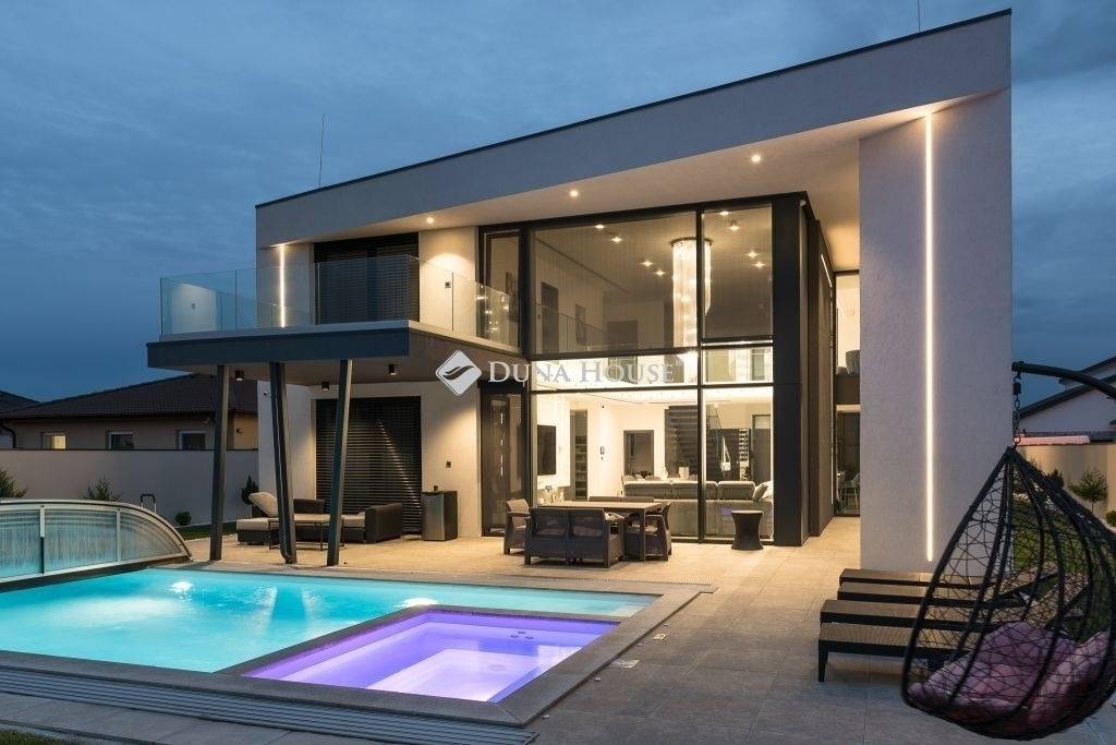A Liliom Lakóparkban eladó egy 2021-ben épült, közel 400 m²-es, két szintes panorámás villa, prémium anyagokkal és modern technológiával.