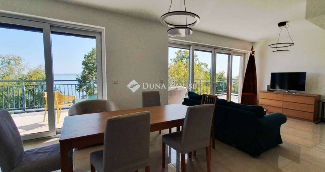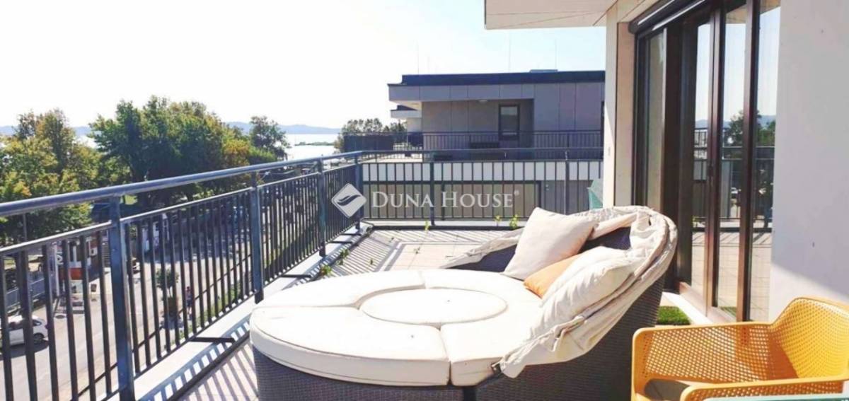 GYÖNYÖRŰ BALATONI ÖRÖKPANORÁMÁS LUXUSLAKÁS ELADÓ CSOPAKON!ELHELYEZKEDÉSA lakópark Csopakon közvetlenül a stand mellett helyezkedik el. Központi elhelyezkedése miatt éttermek, kávézók, élelmiszerbolt, buszmegálló, vasútállomás a közelben, gyalogos elérhetőségben találhatóak.Csopak a Balaton keleti medencéjének északi partján a 71-es főút mentén fekszik Balatonfüredtől pár kilométerre. Szőlővel beültetett lankáin kezdődik a csopaki borvidék.ÉPÜLET2018-ban épült modern, környezettel harmonizáló 3 emeletes, 10 lakásos tégla építésű, akadálymentesített társasház. A lakáshoz tartozik a társasház zárt területén található, kizárólagos használatú kültéri parkoló. Az udvar parkosított, térkövezett, telefonról irányítható elektromos kapuval zárható.LAKÁSA 3. emeleti 112 m2-es lakásban négy hálószoba, két fürdőszoba, különálló WC és egy hatalmas, napfényes 45 m2-es konyha-étkező-nappali található. A lakás legfőbb ékessége a 90 m2-es, fantasztikus balatoni panorámás, távirányítós naprolóval felszerelt terasz, mely a lakás összes szobájából közvetlenül megközelíthető. A megfelelő hőmérsékletről házközponti hőszivattyús padlófűtés, valamint hűtő-fűtő fan-coil gondoskodik.További információkért és megtekintésért hívjon, vagy küldjön e-mailt.Ne feledje vevőinknek minden szolgáltatásunk ingyenes.