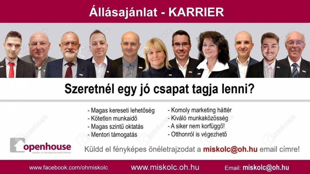 Hivatkozási szám: #163841Az Openhouse Miskolc Szentpáli utcai Ingatlaniroda tagjaként várom Önt az országos hálózatunk teljes kínálatával.