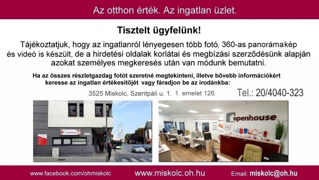 Hívjon, ne maradjon le erről a kivételes lehetőségről! Amennyiben a 161556-os számú eladó sárospataki társasházi lakás, vagy bármely a kínálatunkban szereplő eladó társasházi lakás felkeltette a figyelmét, keressen bármikor bizalommal: