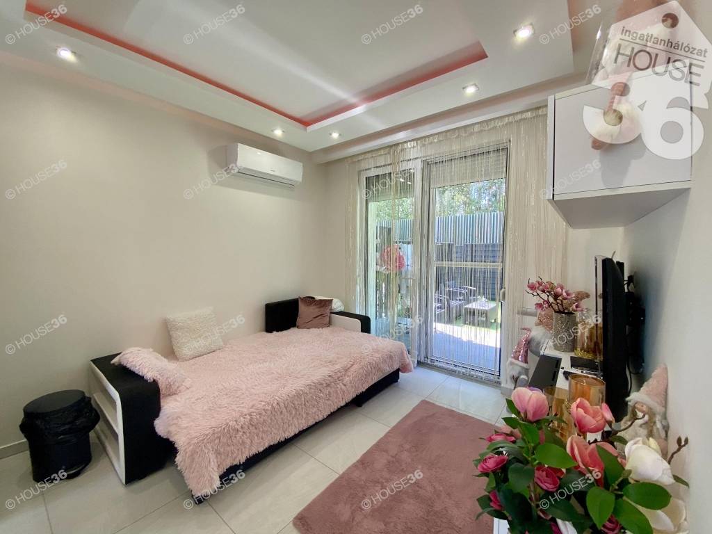 - 22 m2 műfüves kertkapcsolattal, napfényes terasszal, térkövezett udvar