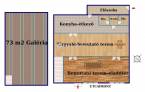 A bemutató terem felett igényesen kialakított impozáns méretű(73 m2)-es galéria található, mely az utcai bejáratból is látszik.