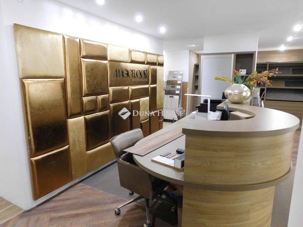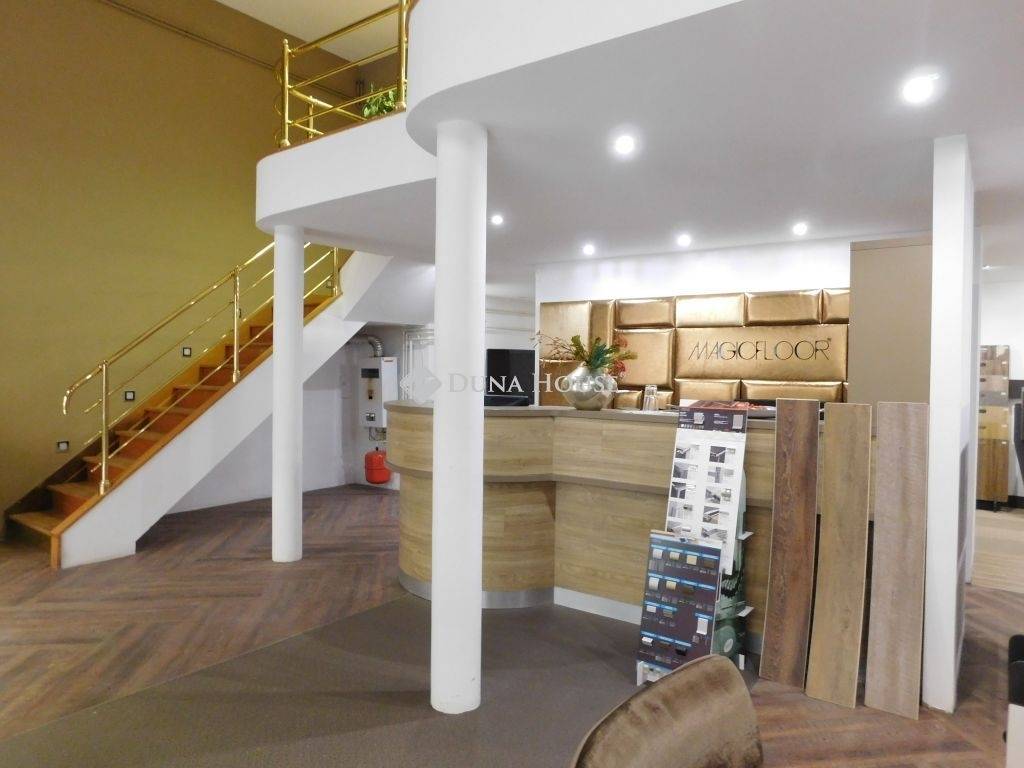 A közel 100 m2-es földszinti rész kettő nagyobb helységből áll, az üzlettérből, és a mögötte található tárgyaló-bemutató teremből.