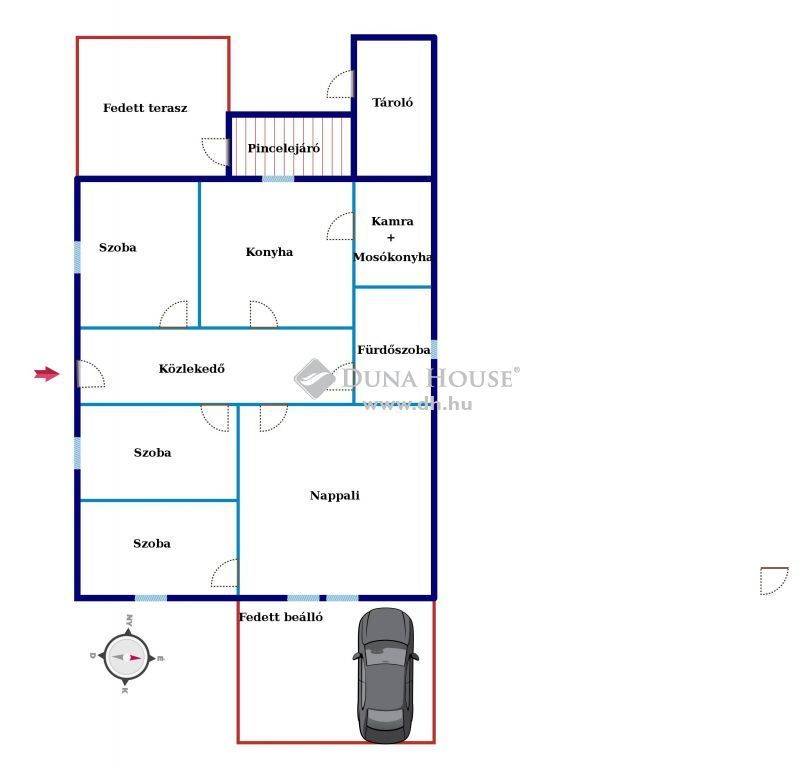 - a ház előtt fedett gépkocsi tároló és emellett 2 kocsi is kényelmesen elfér