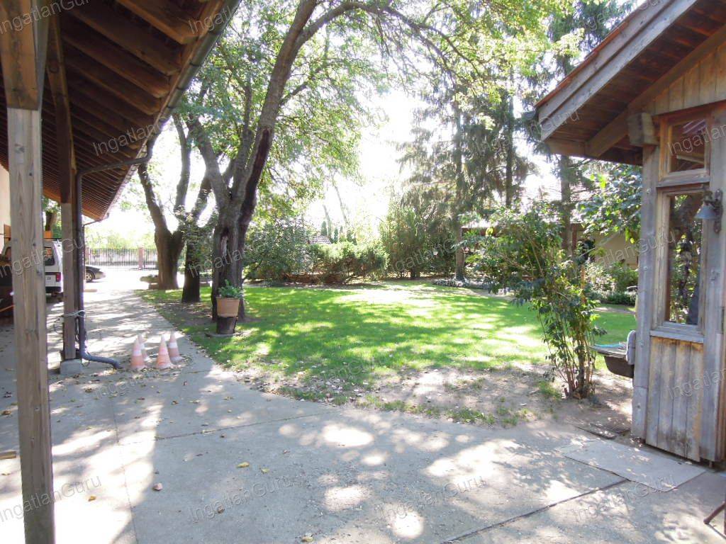 Lovas tanya-birtok ELADÓ Lajosmizse közelében, autópályától 6 km-re, eton út mellett 33 Ha gondozott területen Az ingatlan jellemzői: - lakóház földszint: konyha, ebédlő, szoba, fürdőszoba, külön wc, emelet:nappali, 40 nm terasz fűtés: padlófűtés, gáz - nagy vendégház (fagerendás, galériás) földszint: nagy terasz, modern konyha, ebédlő, nappali, fürdőszoba- wc (elektromos vízmelegítő boyler) fatüzelésű cserépkályha emelet, tetőtér: nagy hálószoba - kis vendégház nagy terasz, modern konyha, nyitott lépcsőház, fürdőszoba wc, emelet: hálószoba - lakóház istállóval 7 világos, ablakos ló boksz (3m x 3,5m) nyeregszoba, (wc-vel, padlófűtéssel, étkező) Az istállóhoz lakóház lett építve. Ahol a földszinten található nagy-nyitott nappali, étkező-konyha, wc, mosókonyha mosógéppel, szárítóval. A nappaliból közvetlen kilátás nyílik az istállóban lévő bokszokra. Az emeletre nyitott, akácfa-csigalépcső vezet, ahol hatalmas hálószoba, gyerekszoba , valamint fürdőszoba wc lett kialakítva. Házban padlófűtés van. Ebben az ingatlan másik oldalán helyet kap 2 traktor, valamint gépek is. A tetőtérben elegendő hely van 2500 széna-szalmabálának, melyek mozgatását egy 20 m-es szállítószag könnyíti meg. - udvari istálló Egyik oldalán dupla garázs, melynek egy része műhely. Emellett 3 bokszos (4m x 4,5 m) istálló (pl. csikós kacáknak) melyek 2-2 ajtóval rendelkeznek , így könnyen 3 bokszból 6 állóhely kialakítható. A negyedik boksz helyén (8 nm)hűtőkamra lett kialakítva. Az istállóban takarmánykeverő is található, mely a tetőtérbe telepítettsilókból keveri a takarmányt. Az udvari istálló végén kb 30 nm tér, ahol van az istálló-mosógép is. A tetőtérben különböző gépeknek, eszközöknek van még hely. - legelő, mező, termőföld A házak és az istálló mellett, egy kb. 15 Ha területen legelő-kifutó lett kialakítva a lovaknak. A legkisebb legelő 800 nm, a legnagyobb majdnem 60 000 nm, akácfából készült oszlopokkal körbe lett kerítve. Biztonsági okokból a mezőket 1,25 m magas műanyag drótháló veszi körül. Az aszfaltos út másik oldalán 18,8 Ha megművelt földterület van. Az utcába nemrég vezették a gázt. - esővíztároló tó A birtokon található egy hitelesített, ivóvizes kút, valamint egy kb. 1300 köbméteres esővíztároló. - kis istálló A korábbi juhistálló pár éve át lett alakítva ló bokszokká. A bokszok alakíthatók, így pl. használható 2 nagy lónak és csikónak, vagy 4 külön tartott lónak.A hátsó részben a takarmánytároló található. - tároló csarnok, fólia sátor 300 nagyméretű körbálának elegendő 12m x 32m x 7m nagyságú fóliasátor - biztonság A tanya biztonséga érdekében mozgásérzékelő és videokamera rendszer működik. Megtekintés, előzetes személyes megbeszélés, egyeztetés után lehetséges. Várom megtisztelő hívását!