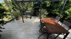 A nappaliból kilépve (szintén két éve felújított) félig fedett kerti teraszra érkezünk.