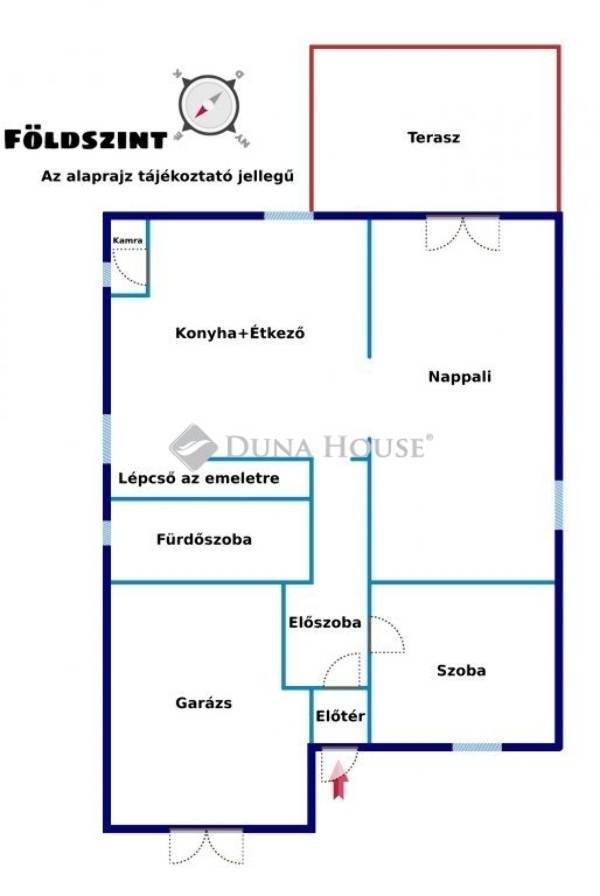 A földszinten lévő folyosóról nyílik a szuterénlejáró, az étkezőből pedig az emeletre juthatunk egy igényes lépcsősorral.