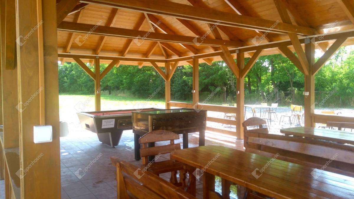 - hatalmas fedett terasz étkező asztalokkal, csocsó és biliárd asztallal