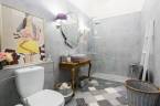 Tágas fürdőszoba, ahol mosógép is helyet kapott