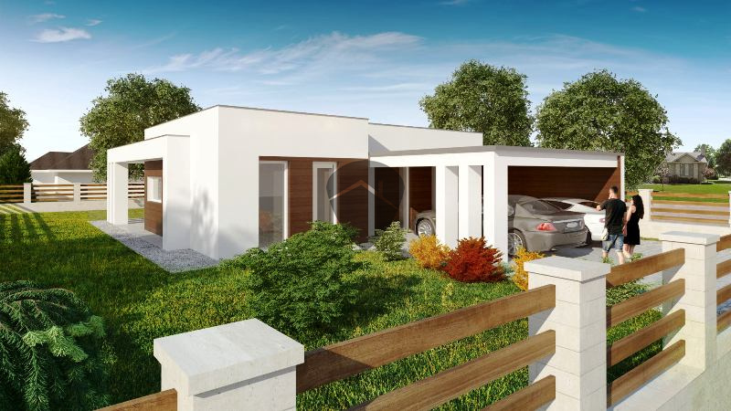 A praktikusan tervezett házban a szobákon kívül tágas és napfényes amerikai konyhás nappali, egy gardrób, fürdőszoba és egy háztartási helyiség is kialakításra kerül.