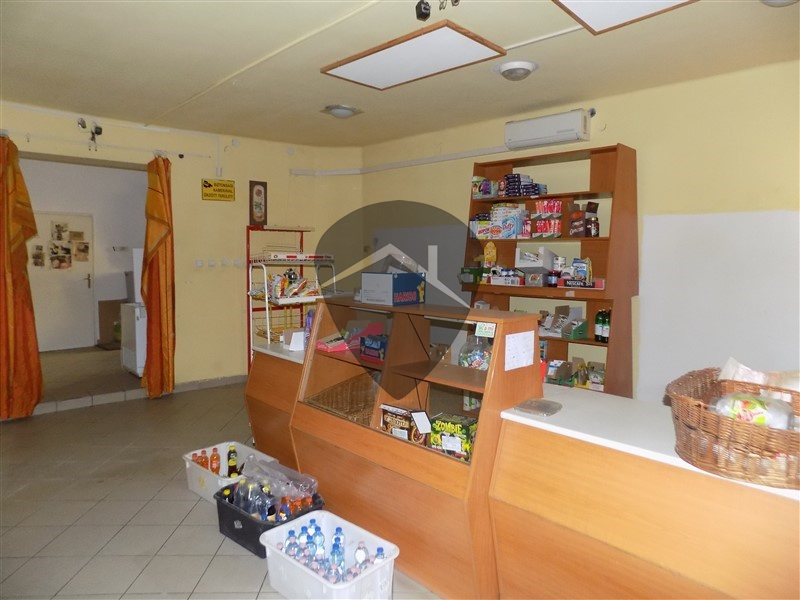 A közművesített ingatlanon található 2 nagyobb (egy 80m2-es, és egy 82m2-es), egy kisebb (38m2-es) lakás, egy 100 fő befogadására alkalmas étterem, mely már 15 éve nem működik, egy kis vegyesbolt, ami egy esztendeje nem fogad vevőket, és egy pékség, amely 130m2-es, és 6 éve nem készít már finomságokat. A pékség végében, még található egy garázs.