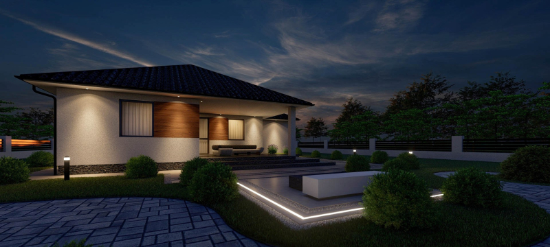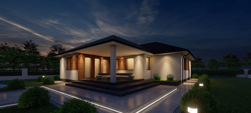 A praktikusan tervezett házban a szobákon kívül tágas és napfényes amerikai konyhás nappali, gardrób, kamra, szélfogó, közlekedő, fürdőszoba, háztartási helyiség és egy külön mellékhelyiség is kialakításra kerül.