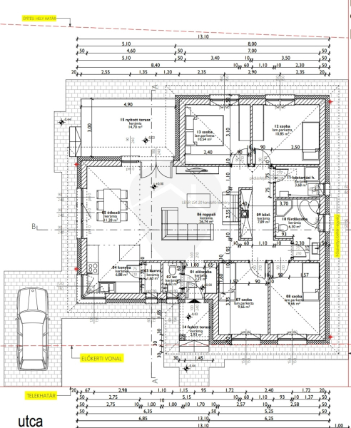 A nappali + négy szobával(vagy akár több szobával)rendelkező ingatlan alapterülete nettó 110 m2, mely igény szerint módosítható.