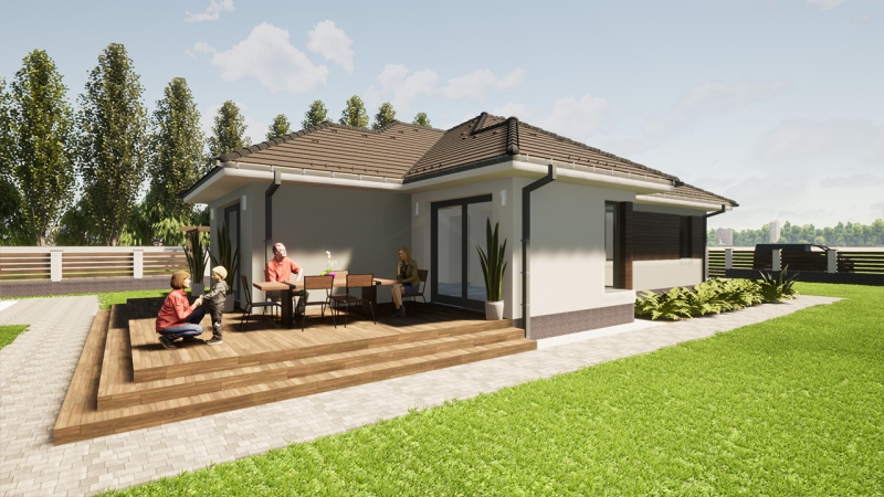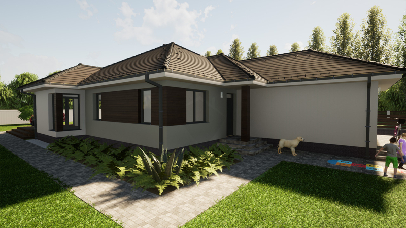 A praktikusan tervezett házban a szobákon kívül tágas és napfényes amerikai konyhás nappali, gardrób, kamra, szélfogó, közlekedő, fürdőszoba+wc, háztartási helyiség és egy külön mellékhelyiség is kialakításra kerül.
