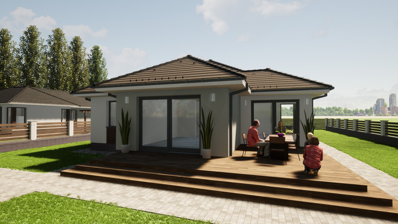 Továbbá az ár tartalmazza a komplett tervezői díjat(gépészet, metszetek, statika, energetika, engedélyek), plusz egy inverteres(hűtő-fűtő) klímát!