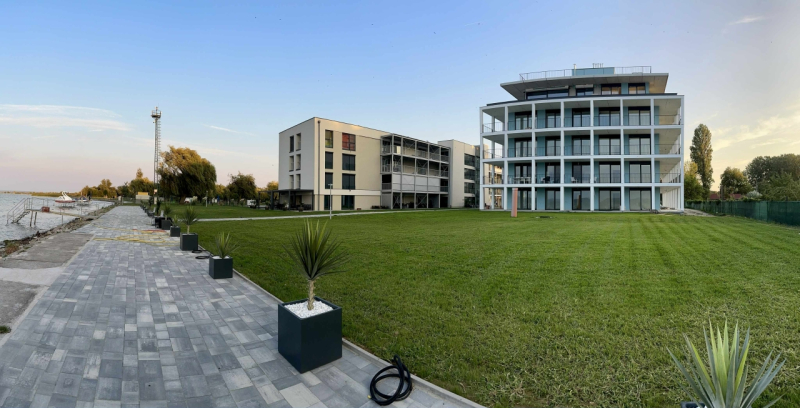 Balatonmáriafürdő központi részén, körbekerített parkosított telken, saját partszakasszal rendelkező lakóparkban, harmadik emeleti,