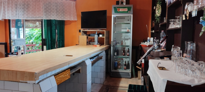 A terasz felől közelíthető meg a pulttal rendelkező 43 m2 alapterületű helyiség, ezen át pedig a másik vendégtér, valamint külön női és férfi mosdók.