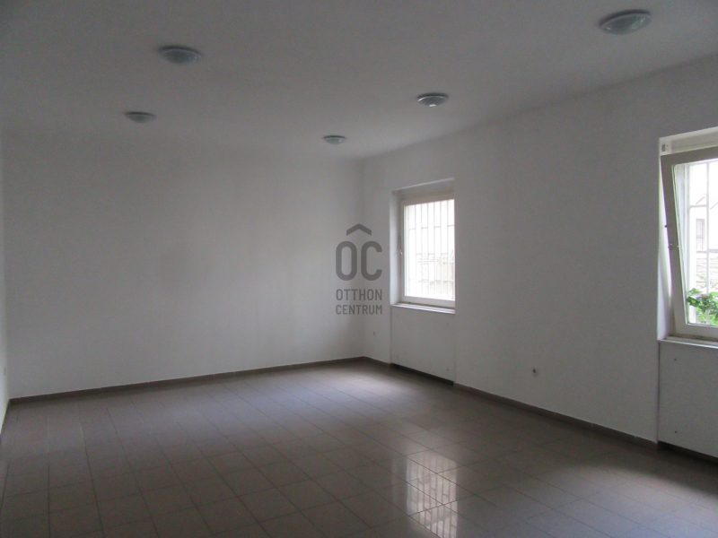 A kb tíz méter utcafronti kirakattal rendelkező ingatlan utcafronti üzlethelyiség része 50 nm, a fallal félig leválasztott belső része 35 nm, a raktár a mosdó-Wc-vel 15 nm. A raktárba pakolás a hátsó parkoló felőli bejáraton keresztül is megoldható.