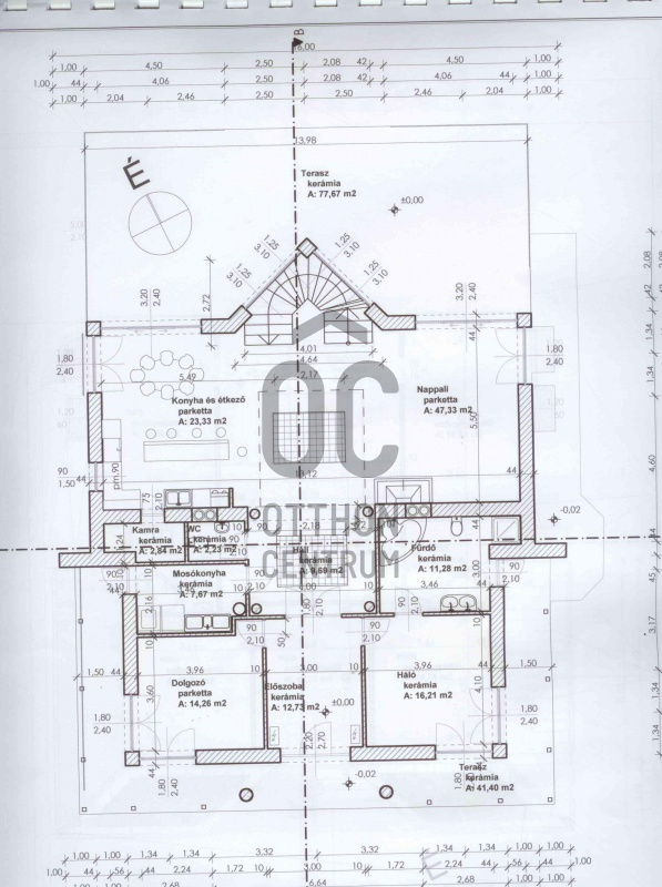 A ház hangulatához és eleganciájához jól illeszkedik az uralkodó gránit-burkolat, a hálószobákban fa-parketta.