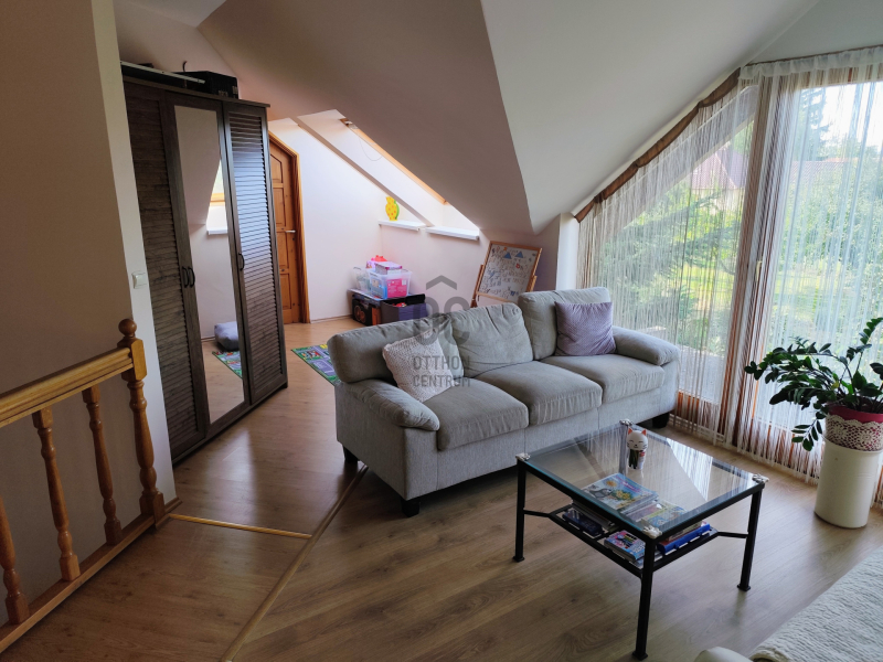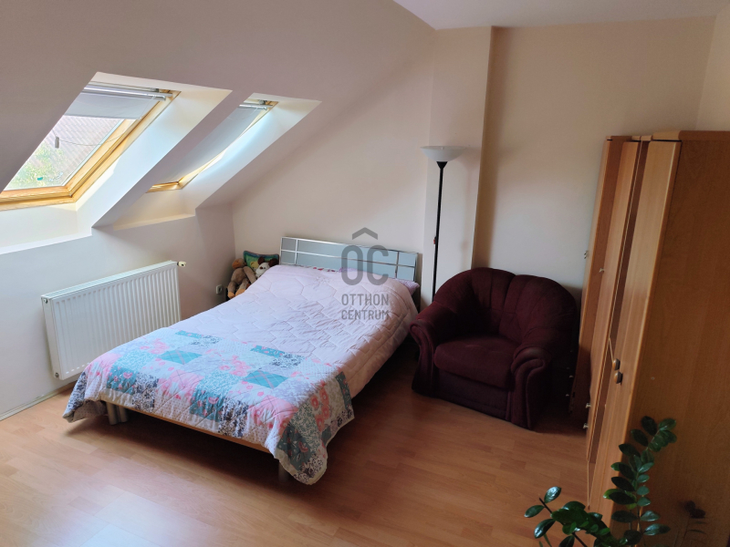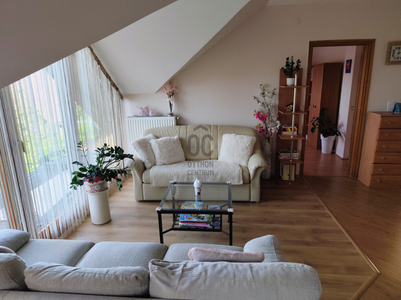 Az előtérből juthatunk a tetőtérbe, ahol nappali, mellette gyereksarok, 2 hálószoba, zuhanyzó, külön WC és 2 erkély található.
