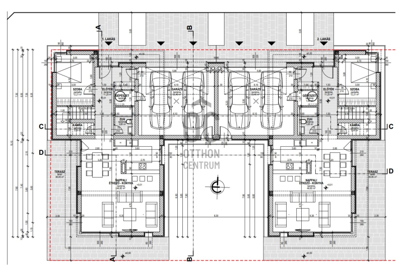 A házban amerikaikonyhás nappali, 4 hálószoba és 3 fürdőszoba található, valamint egy 40 nm-es terasz is rendelkezésre áll.
