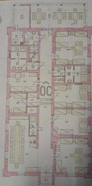 A tégla építésű ingatlan 240 nm.Hat hálószobából ,négy fürdőszobából és egy 40nm-es konyha-étkezőből áll.