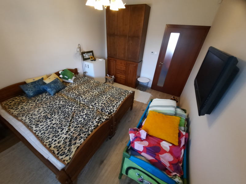 - az ingatlanban 3 hálószoba, hatalmas nagy nappali amerikai konyhával, étkezővel, 2 fürdőszoba, 2 toalet , mosókonyha, fedett és nyitott terasz található