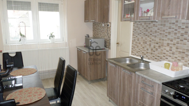 Ezen a folyamatosan fejlődő, szépülő, épülő településen ajánlok megvételre egy két szintes (tetőtér beépítéses) családi házat. A földszinten és a tetőtérben is egy-egy 3 szobás, konyhás, fürdőszobás, közel 100-100 négyzetméteres lakás lett kialakítva, külön világítási és fűtési rendszerrel.(külön villany és gázmérő). A lakóház egy könnyen kezelhető, karbantartott 540 négyzetméteres telken helyezkedik el, mely beton sávalapon, tégla falazattal, betongerendás, béléselemes födémmel, fa tetőszerkezettel, Bramac betoncserép fedéssel készült. A tetőtér teljes mértékben be lett építve, melynek a szigetelése tökéletes. Az ingatlanban az elmúlt időszakban felújítás történt. A nyílászárók műanyagok, az elektromos rendszer részben réz vezetékes. Ebben az évben fejlesztették az elektromos hálózatot, így az ingatlanban 3X32 amper érhető el, tehát 3 fázis (380V) lett bekötve.