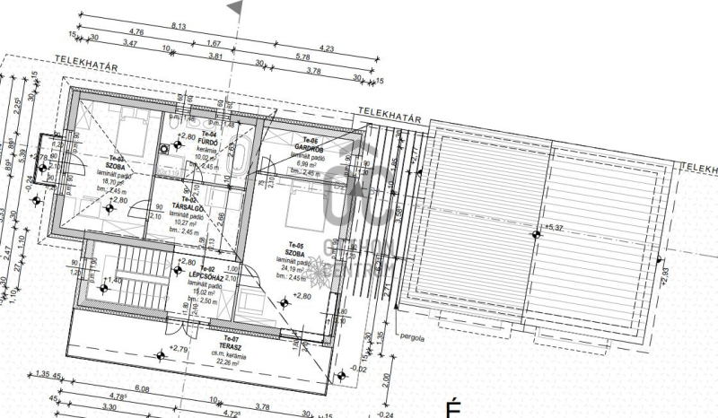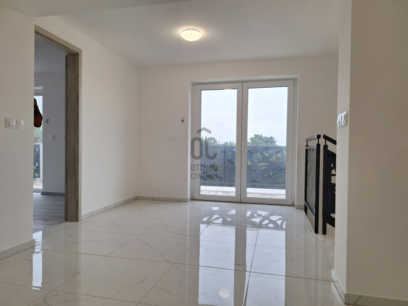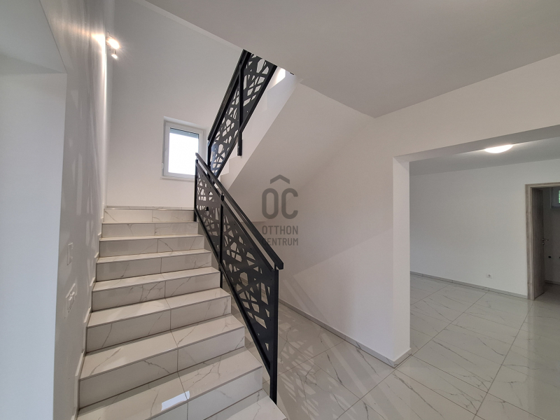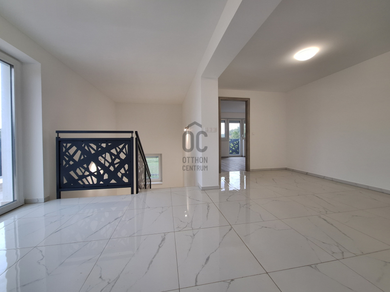 Impozáns, világos terek jellemzik. 2 nappalival, terasszal, erkéllyel, padlófűtéses garázzsal ( 60 m2).