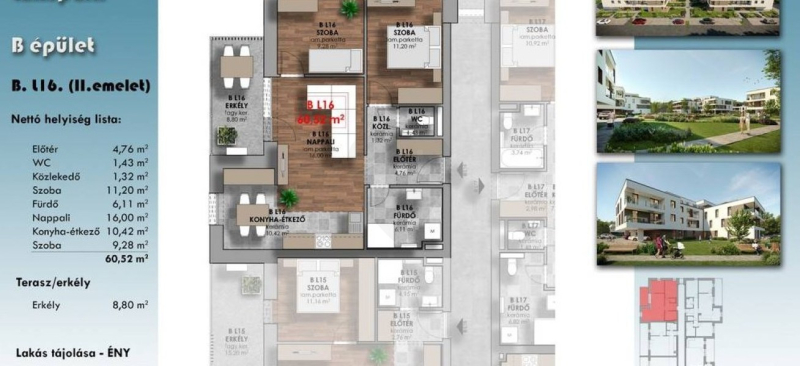 Leendő ügyfeleink egészen a Nappali+1 szobás lakásoktól a Nappali+3 szobás lakásokig megtalálhatják a számukra megfelelőt, a lakások kényelmes, nagy erkélyekkel rendelkeznek.
