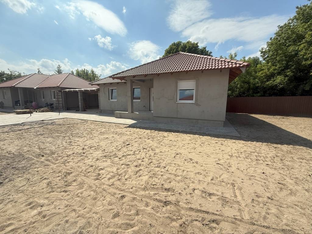 Eladó új építésű ikerház Bács-Kiskun megyében, azon belül Tiszakécskén a központban. Az ingatlan 75,1 nm hasznos területtel rendelkezik, amerikai konyhás nappali, két szoba, wc és fürdőszoba alkotja, a telek területe 500 nm.