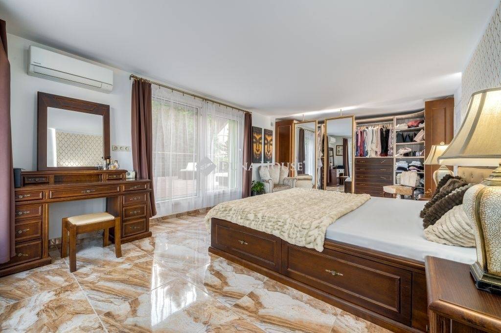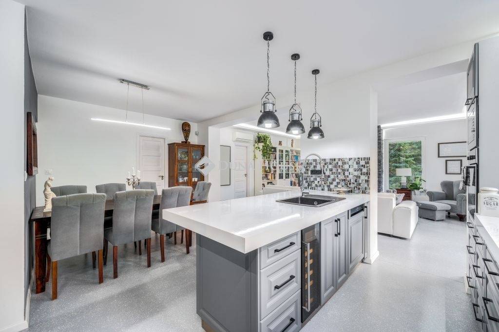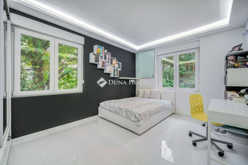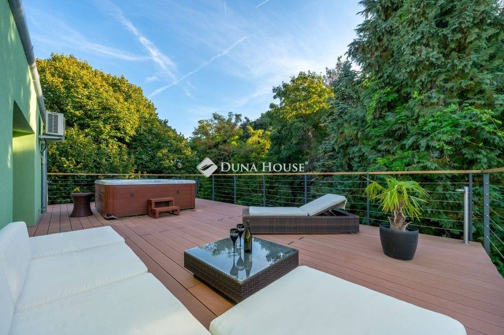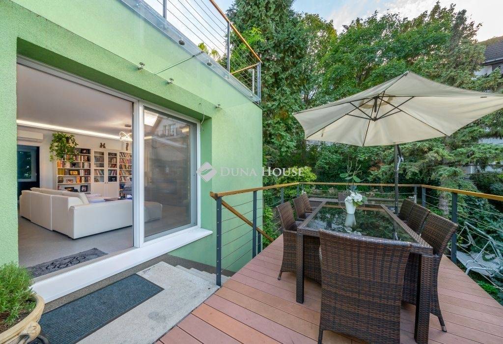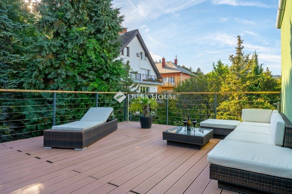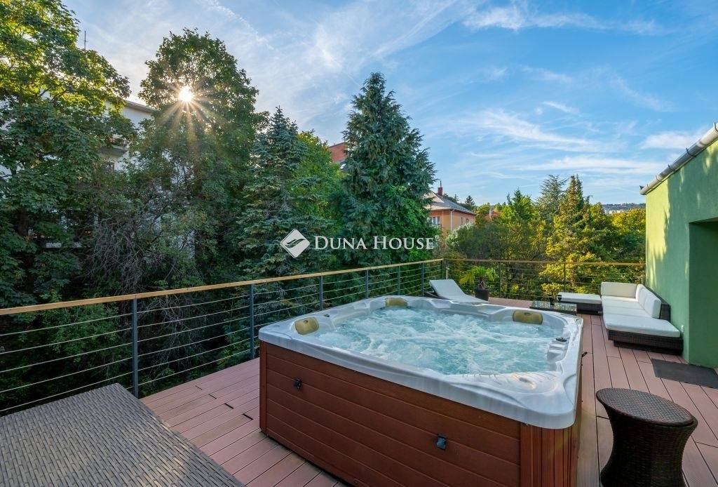 Igényes kialakítás, élhető terek, minőségi berendezés, panorámás terasz, kert, garázs...KÖZVETLEN KERTKAPCSOLAT, ÖSSZESEN 80 NM TERASZ12. kerületben a Fürj utcában 150 nm-es, belső kétszintes , nagy teraszos, panorámás, kifogástalan állapotú lakás, saját kertrésszel, bútorzattal és garázzsal eladó.Az ingatlan teljes körű felújításon/átalakításon esett át.A felújítás kiterjedt a gépészetre, villamos és vízhálózatra, külső és belső nyílászárókra a ház külső szigetelésére, teraszok kialakítására és természetesen a burkolatokra és a berendezésre is.A kialakítás során a praktikusság mellett fő szempont volt a minőség és az elegancia, melynek eredményeként született meg ez a rendkívül stílusos lakás.Elosztását tekintve kifogástalan, az alsó szinten közel 60 nm-et foglal el a nappali az étkező és a modern felszerelt konyha, továbbá két hálószoba fürdővel, vendég wc és egy gardrób kapott helyet. A nappaliból nyílik egy 16 nm-es grill terasz, ahonnan lépcsőn juthatunk a saját, elkerített gondozott kertbe.A lakás felső szintje a privát rész, egy tágas hálószobával, gardróbbal és egy fürdőszobával, erről a szintről nyílik a lakás egyik különlegessége a panorámás hatalmas TETŐTERASZ, napozóágyakkal, peszgófürdővel, amely csodálatos helyszínül szolgál a meghitt csendes estékhez. A lakásban mindkét szinten padlófűtés van, a szobák hűtő-fűtő klímával felszereltek, a kert gondozásában nagy segítséget nyújt az öntözőrendszer.Az ingatlan teljes berendezéssel (kivéve a személyes tárgyak), garázzsal, kerti fészerrel, pezsgőfürdővel stb. eladó, a vételár mindezt magában foglalja. Reprezentatív környék, igazán igényesen és stílusosan kialakított és berendezett lakás, ideális otthon minden korosztály számára.További információért és megtekintési lehetőségért keressen a megadott elérhetőségeken.