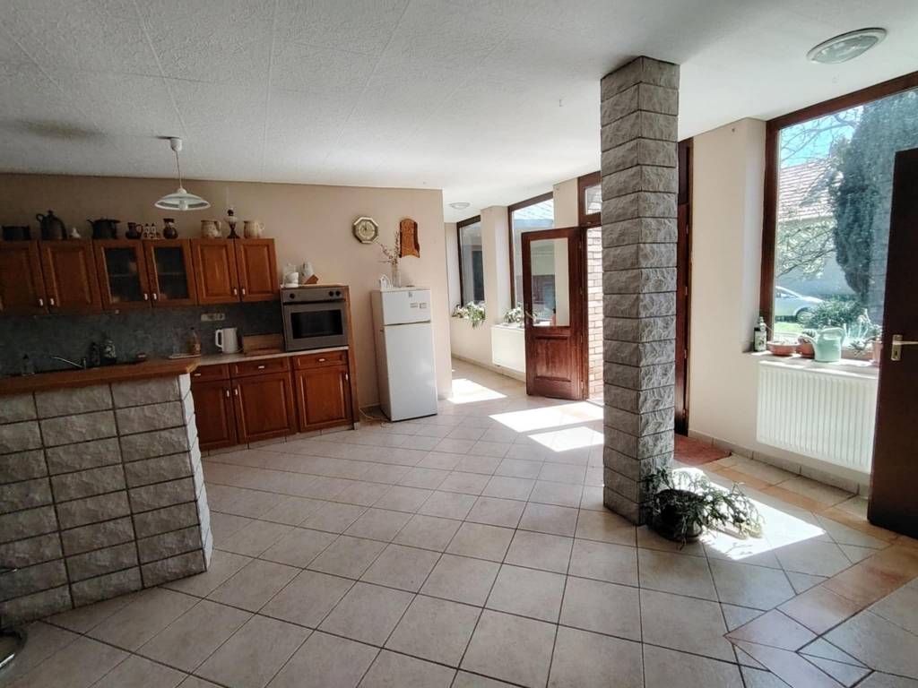 Pécs mellett, Pogányban egy parkosított, 7420 nm-es területen fekvő családi ház most eladó! Főépület: 200nm lakótér, amelyben 5 hálószoba, nappali, gőzkabinos fürdőszoba, külön mosdó, és beépített konyhabútorral felszerelt konyha-étkező található. A ház folyamatosan karbantartott, így egy tisztasági festés ? és kisebb javítások után azonnal beköltözhető. állapotban! A ház alatti alagsor, szuterén (50 m2) alkalmas további funkciók kialakítására, pl. konditerem, szauna, hobbiszoba, stb? A szuterénből egy nagy pince is nyílik. Műhely és melléképületek: 100 nm-es, korábban asztalosműhelyként funkcionáló melléképület, ami kiváló lehetőséget kínál vállalkozás beindítására vagy folytatására. Külön épületben (kb.110 m2) egy szerelőaknás duplagarázs és egy kisebb műhely is található. Összesen 400 nm tégla falazatú épület az ingatlanon belül! Környezet: A telek egy része gyönyörűen parkosított, és lenyűgöző panorámát nyújt a természeti környezetre. A közeli erdők és túrautak remek kirándulási lehetőségeket kínálnak! A telek növénytermesztésre és állattartásra is kiválóan alkalmas. A telek építési terület, így felosztható, tovább értékesíthető. Fűtés: gázkazán + vegyes tüzelésű kazán Közművek: víz, villany (3 fázis), gáz, csatorna Lehetőségek: Az épület üzleti és vállalkozási lehetőségek széles skáláját kínálja, így ideális választás mind a családok, mind a vállalkozók és a gazdálkodók számára is! Az ingatlan a szerződéskötés és a vételár kifizetése után rögtön birtokba vehető.