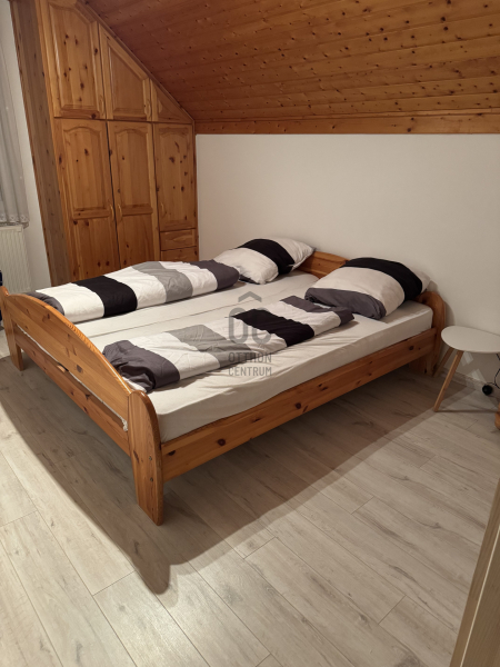 A földszinten egy konyha előszoba az emeleten pedig egy fürdőszoba két hálószoba és egy kisebb nappali található.