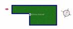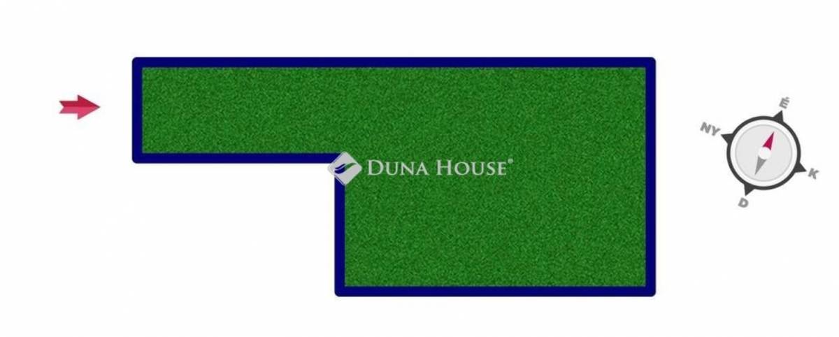 A teleknek két utcafrontja van, a felső részről 7 m széles, 20 m hosszú nyél vezet le a telek hasznos részéhez.
