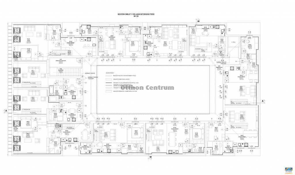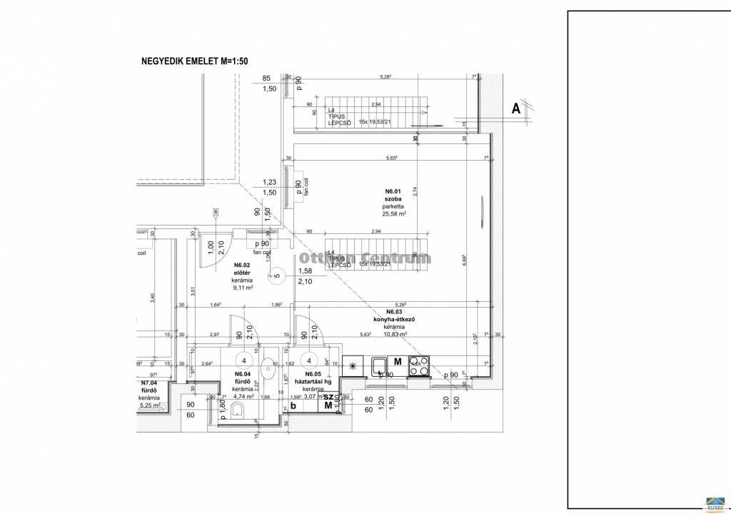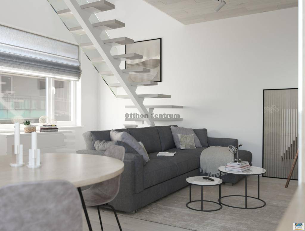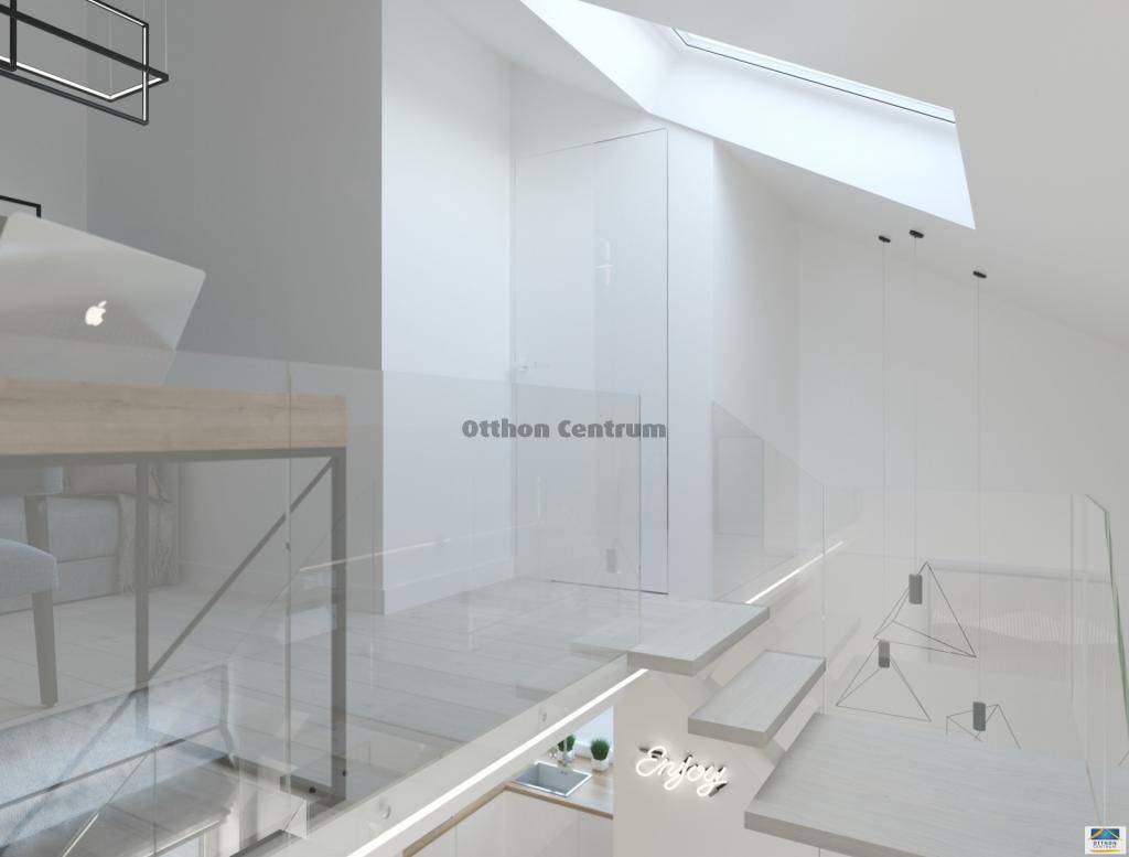 VII. New York Kávéházhoz közel, liftes társasház legfelső 4. emeletén új építésű belső kétszintes lakás eladó.