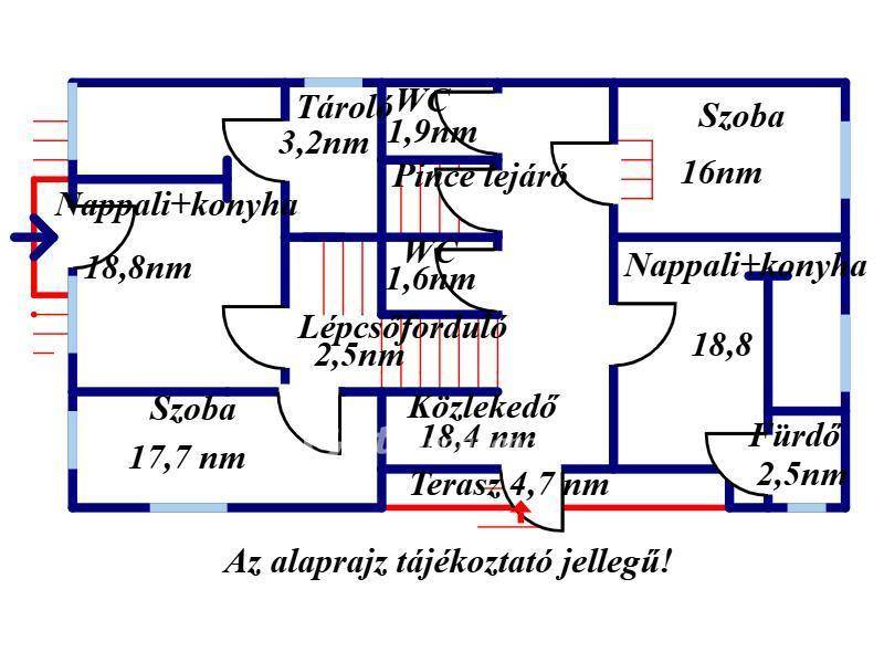 A házban kialakításra került négy egész szoba, két konyha, három különálló wc és egy fürdőszoba! A pince át lett alakítva lakótérré, igy ott is van + egy nagy szoba és egy nappali, külön bejárattal! A környező munkalehetőségeket figyelembe véve kiváló lehetőség akár munkásszálló üzemeltetésére is! A központ néhány perc sétával elérhető!