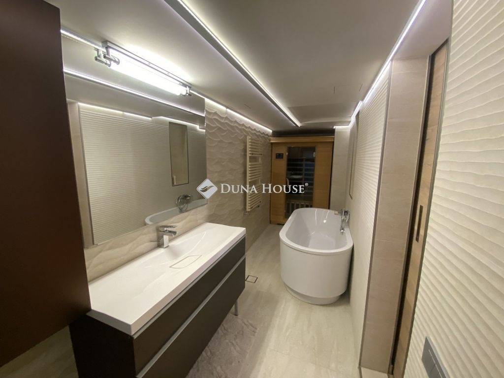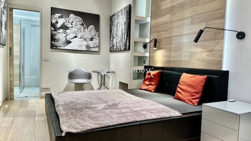 RÖVID ÖSSZEFOGLALÓRitka lehetőség a belváros szívében! Eladó egy exkluzív, teljeskörűen felújított, 93 m²-es lakás a patinás József nádor téren, egy klasszikus, lifttel ellátott épület 2. emeletén. Az ingatlan egyedi belsőépítészeti megoldásokkal, minőségi, helyben tervezett bútorokkal, két külön bejárattal és egy intim hangulatú terasszal rendelkezik. A lakásban két kényelmes hálószoba, két fürdőszoba – az egyik káddal és szaunával, a másik zuhanyzóval – biztosítja a mindennapok luxusát. A korszerű gépészet és a modern extrák – mint a légkondicionáló, alumínium redőnyök, illetve riasztórendszer – még élhetőbbé teszik ezt a különleges otthont.A LAKÁS RÉSZLETEI 3 szoba, ebből 2 hálószoba 2 fürdőszoba: egyik káddal és szaunával, másik zuhanyzóval 93 m²-es alapterület Egyedi, prémium bútorzat helyi tervezéssel 2 bejárat – ideális akár irodának is Lifthofból kialakított saját terasz Alumínium redőnyök minden ablakon Teljeskörű gépészeti és esztétikai felújítás Légkondicionálás, riasztórendszerÉPÜLET ÉS KÖRNYEZETA József nádor tér Budapest egyik legnemesebb helyszíne, a luxus lakókörnyezet és a történelmi építészeti miliő tökéletes találkozása. A társasház kiváló állapotú, elegáns homlokzattal és korszerű lifttel rendelkezik. A második emeleten elhelyezkedő lakás nemcsak világos és csendes, de az udvari elrendezés és a belső terasz révén különösen bensőséges atmoszférát nyújt.BELSŐ TÉRA belső kialakítást a letisztult luxus, valamint az átgondolt, funkcionális elrendezés jellemzi. A központi tér egy tágas, reprezentatív nappali, amelyhez két oldalon külön nyíló hálószobák és fürdőszobák kapcsolódnak. Az egyedi bútorok és a kiváló minőségű burkolatok a lakás karakterét és eleganciáját hangsúlyozzák. A fő fürdőszobában szauna is helyet kapott – ez a funkció ritka különlegesség a belvárosi lakáspiacon.